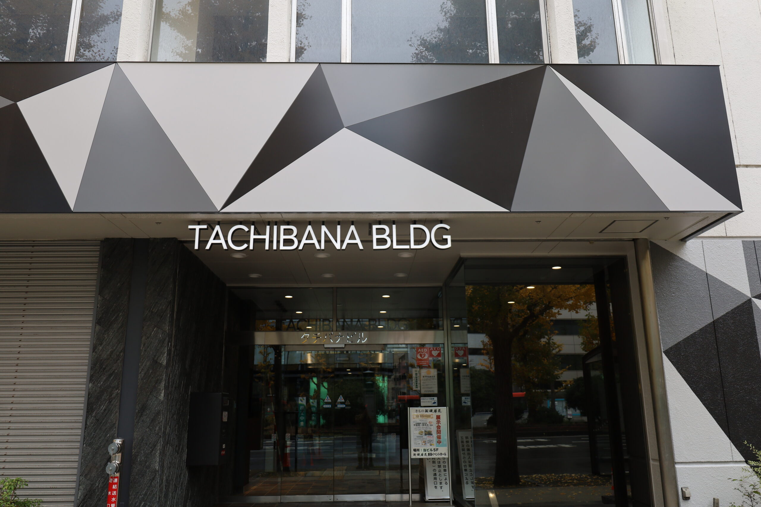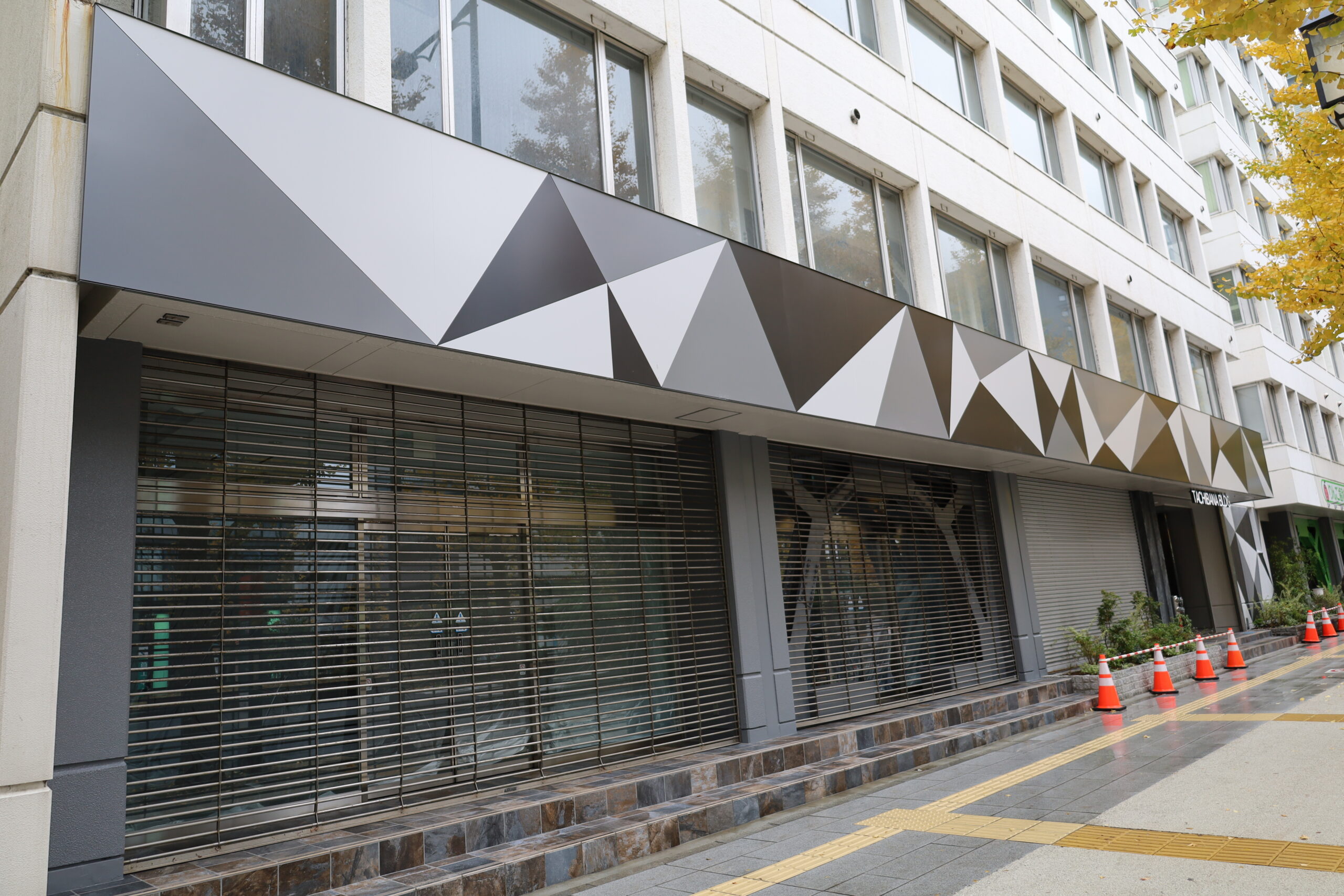 3色のトライアングルの幾何学模様がとても個性的で印象的な外観になりました。